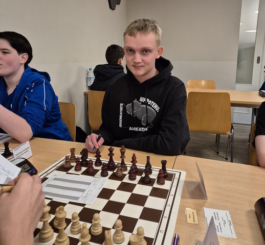 Leo spielte als Topfavorit ein sehr solides Turnier. Nachdem er die ersten beiden Runden, unter anderem gegen Consti, gewonnen hatte, gab er in Runde drei sein einziges Remis ab. Mit einer anschließenden Siegesserie stand er bereits nach der sechsten Runde, neben Moritz, sicher unter den Top 2 und konnte entspannt in die Schlussrunde gehen. Dort machte er mit einem weiteren Sieg alles klar und wurde mit starken 6,5/7 verdient Bezirksmeister der U16.